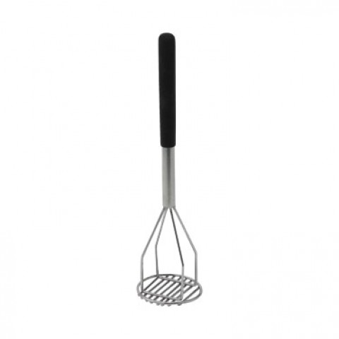 Potato Masher, 4" dia. x 18"L, round, chrome plated handle with black textured polypropylene handle sleeve, nickel plated masher (Qty Break = 6 each)