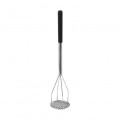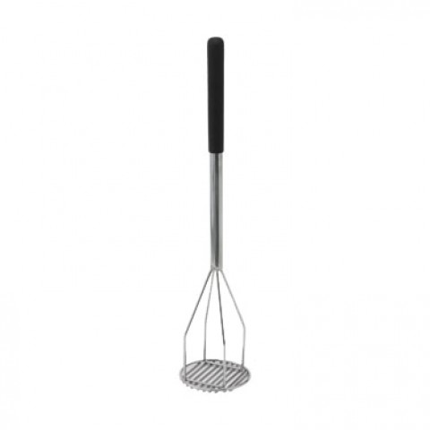 Potato Masher, 5" dia. x 24-1/2"L, round, chrome plated handle with black textured polypropylene handle sleeve, nickel plated masher (Qty Break = 6 each)