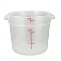 Storage Container, 6 qt., 8.81" x 10.06" x 7.81"H, round, temperature range: -40°F to 160°F, with built-in handles, graduation markings in quarts & liters, stain resistant, dishwasher safe, BPA free, polypropylene, translucent, NSF (Qty Break = 12 each)
