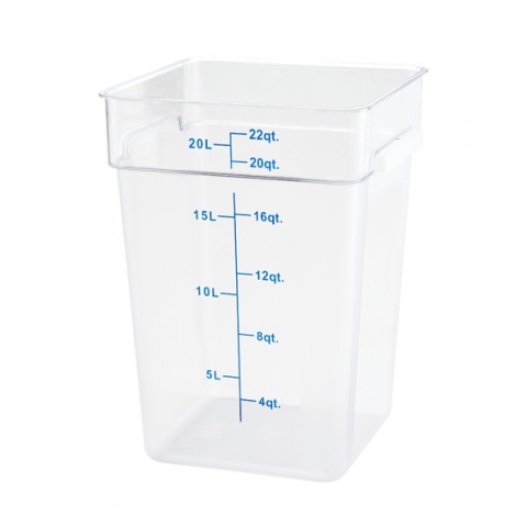 Storage Container, 22 qt., 11" x 12" x 15-5/8"H, square, built-in handles, graduation markings in quarts & liters, temperature range: -40°F to 160°F, stain resistant, dishwasher safe, BPA free, polypropylene, translucent, NSF (Qty Break = 6 each)