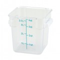 Storage Container, 4 qt., 7-1/16" x 7-5/8" x 7-1/4"H, square, built-in handles, graduation markings in quarts & liters, temperature range: -40°F to 160°F, stain resistant, dishwasher safe, BPA free, polypropylene, translucent, NSF (Qty Break = 12 each)