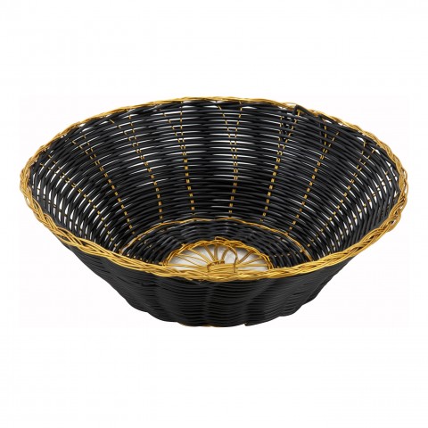 Woven Basket, 8-1/2" dia. x 2-1/4"H, round, wire reinforced, polypropylene, black with gold trim (Qty Break = 12 dozen)