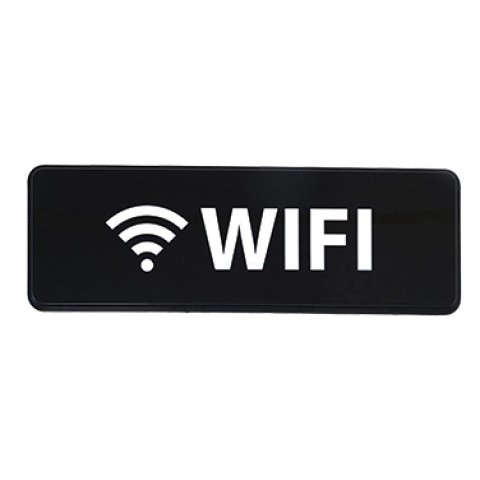 Information Sign, with symbol, 9" x 3"H, "WIFI", white imprint on black (Qty Break = 12 each)