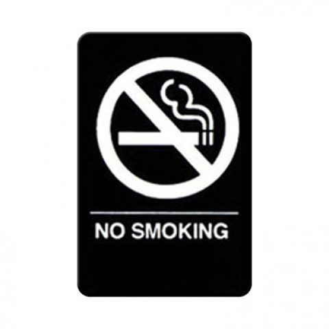 Sign, with symbol, 6" x 9"H, braille, "NO SMOKING", white imprint on black (Qty Break = 12 each)