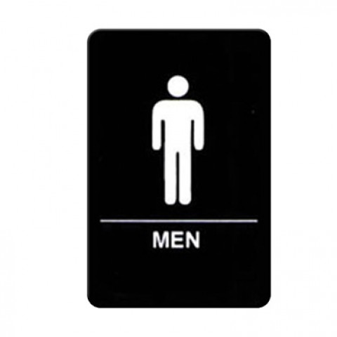Sign, with symbol, 6" x 9"H, braille, "MEN", white imprint on black (Qty Break = 12 each)