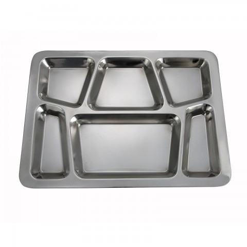 Mess Tray, 6 compartments, 15-1/2" x 11-1/2", Style B, rectangular, dishwasher safe, stainless steel, mirror finish (Qty Break = 24 each)
