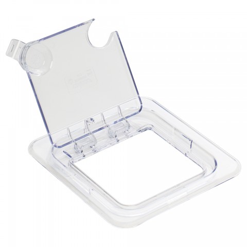 Food Pan Cover, 1/6 size, hinged, notched, peg hole, polycarbonate, NSF (Qty Break = 12 each)