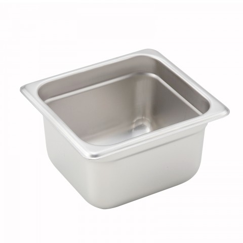 Steam Table Pan, 1/6 size, 6-7/8" x 6-5/16" x 4" deep, 22 gauge heavy weight, anti-jamming, 18/8 stainless steel, NSF (Qty Break = 12 each)