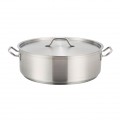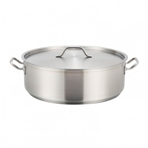 Premium Brazier, 25 qt., 17-3/4" dia. x 6"H, round, with cover, tri-ply heavy duty bottom, with aluminum core, induction ready, 18/8 stainless steel, NSF (Qty Break = 2 each)