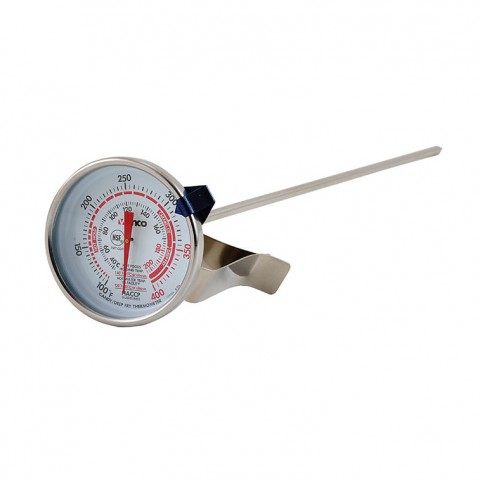Candy/Deep Fry Thermometer, temperature range 100° to 400° F, 2" dia. dial face, with stem, built in pot clip, 12" probe, adjustable indicator, NSF (Qty Break = 12 each)