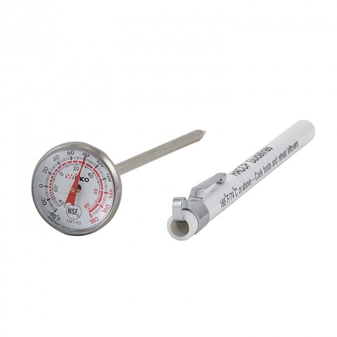 Pocket Thermometer, temperature range -40° to 180° F, 1" dia. dial face, with case & clip, 5" probe, built in mounting clip, HACCP, NSF (Qty Break = 12 each)