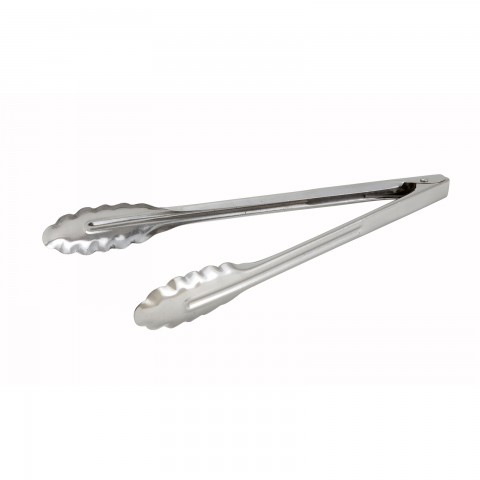 Utility Tongs, 12", coiled spring, scalloped edge, medium weight 0.6 millimeter stainless steel (Qty Break = 12 each)