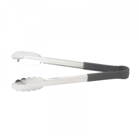 Utility Tongs, 16", for cold food service, scalloped edge, heavy duty plastic handle, stainless steel, black (Qty Break = 12 each)
