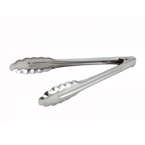 Utility Tongs, 9", coiled spring, scalloped edge, medium weight 0.6 millimeter stainless steel (Qty Break = 12 each)