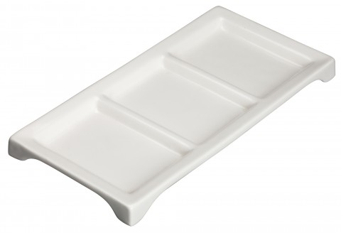 Trio Tray, 10" x 5", three-compartment, rectangular, dishwasher safe, porcelain, Loures™, Ardesia™, bright white (24 each per case) (Qty Break = 1 case)