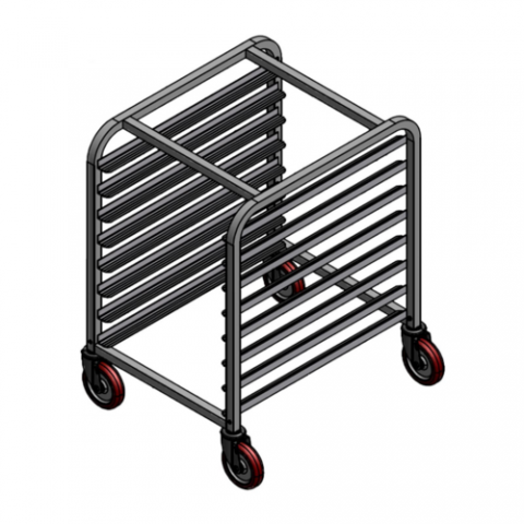 Pan Rack, half-height, holds (8) 18" x 26" trays, aluminum construction, (4) 5" polyurethane swivel stem casters