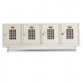 Lockers, wall mounted, 48″W x 18″D x 13-5/8″H (overall), (4) total lockers, doors are mesh grid, beige finish, includes: garment storage bar, fully assembled