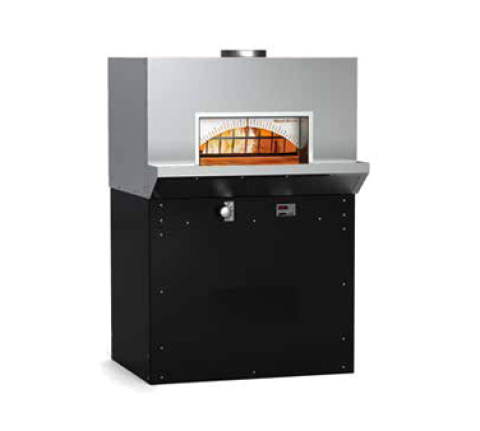 Bistro Stone Hearth Oven, radiant gas flame on left side, 39" w x 27" d hearth, (8) 8", (6) 10", (4) 12" or (2) 16" pizza capacity, monolithic cast-ceramic floor & dome create "deep heat sink", stainless steel upper body and mantel, black PC steel base, 10" OD flue collar, ETL-Sanitation, 80,500 BTU