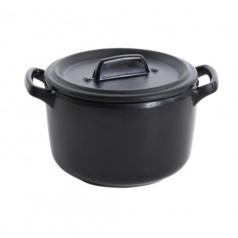 Black Pearl Bowl, 8 oz., 3-1/2" dia. x 2-3/4"H, round, with handles and lid, dishwasher safe, melamine, black (sold by case)