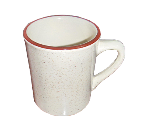 Brown Speckled Ventura Mug, 7 oz., 3-1/2" dia. x 3-1/2"H, round, dishwasher, oven and microwave safe, ceramic, brown rim, brown speckled-American white (sold by case)