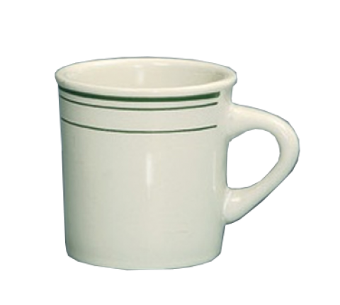 Green Band Mug, 8 oz., 3-1/8" dia. x 3"H, round, dishwasher, oven and microwave safe, ceramic, American white (sold by case)