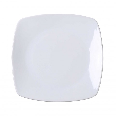 Main Land Plate, 9"L x 9"W x 1"H, square with rounded corners, dishwasher, oven and microwave safe, porcelain, super white (sold by case)