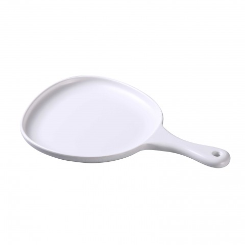 Moderne Pan Plate, 12"L x 8"W x 1"H, organic shaped, with handle, dishwasher safe, melamine, matte finish, white (sold by case)
