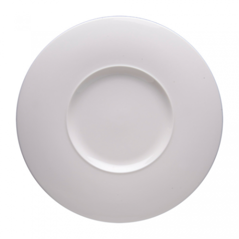 Stilus Plate, 12" (30.5cm), flat wide-rim, 6" well, dishwasher safe, microwave safe, oven safe up to 400°F, chip and break resistant, vitrified China, white (2 each weight) (Per case = 12 each)