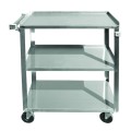 Update Internationalâ„¢ - Bus Cart, 300 lb. capacity, 3-tier, 27-1/2"L x 16-1/4"W x 32-1/8"H, bumper guards on handle and corners, stainless steel construction, 4" dia. swivel casters (2 with lock)