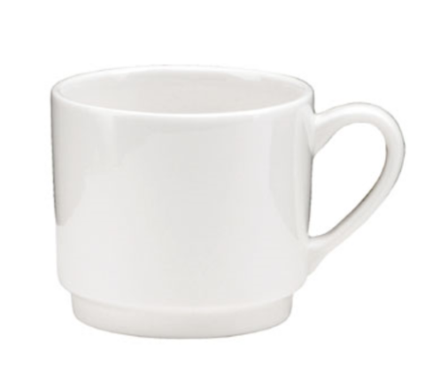 Oneida® - Cup, 9 oz., 4-1/2", round, stackable, handled, Vitrified High Alumina porcelain, bone white, Tundra™ (must be purchased in case quantities) (limited 5 year warranty contact factory for details)