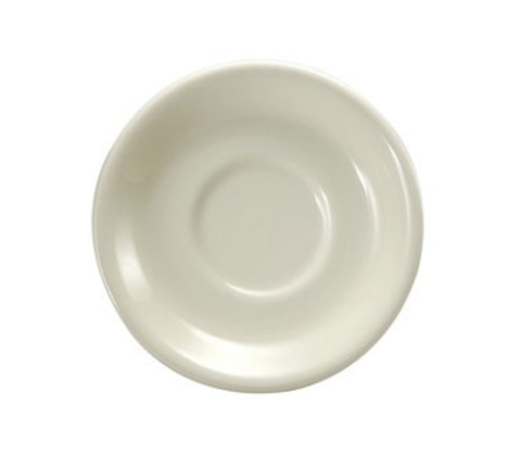 Oneida® - A.D. Saucer, 4-7/8", rolled edge, twice fired, reinforced edges, cream white with green lines, Buffalo, Niagara (must be purchased in case quantities)
