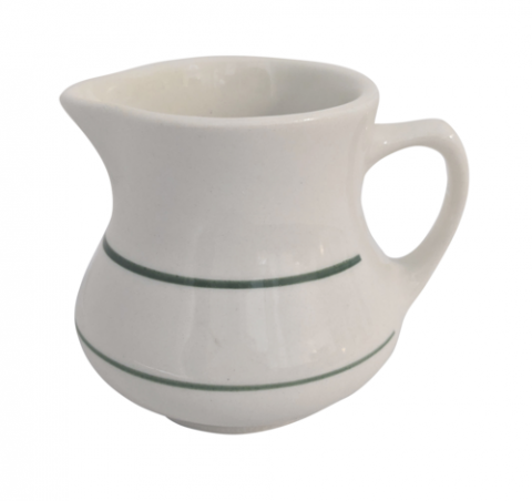 Oneida® - Creamer, 5 oz., with handle, porcelain, cream white with green lines, Buffalo, Niagara (must be purchased in case quantities)