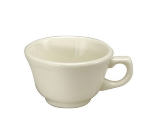 Oneida® - Cup, 7-1/4 oz., 4", round, handled, reinforced scalloped edge, microwave and oven safe, twice fired, china, cream white, Buffalo, Caprice™, Manhattan Black (must be purchased in case quantities)