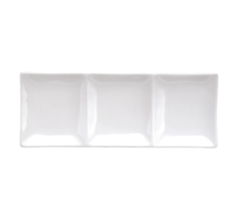 Oneida® - Compartment Dish, 12" x 4-3/4", rectangular, 3-compartment, rolled edge, microwave and dishwasher safe, scratch-resistant glaze, porcelain, bright white, Buffalo, White Ware (1 year no-chip warranty)