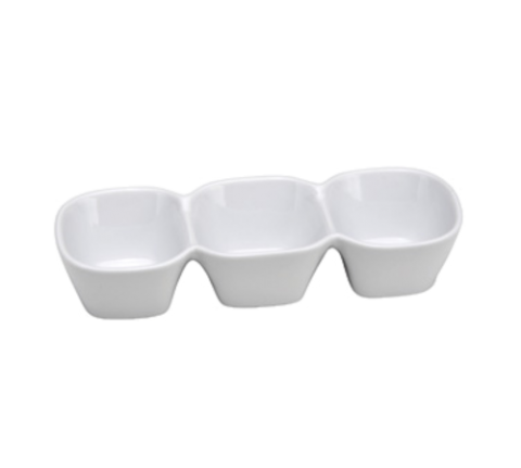 Oneida® - Compartment Dish Bowl, 9-1/2" x 3-3/8", rectangular, 3-compartments, rolled edge, microwave and dishwasher safe, scratch-resistant glaze, porcelain, bright white, Buffalo, White Ware (must be purchased in case quantities) (1 year no-chip warranty)