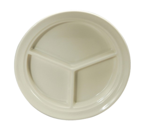 Oneida® - Plate, 8-3/4" dia., round, 3-compartments, scratch & mark resistant, microwave & dishwasher safe, porcelain, cream white, Buffalo, White Ware (1 year no-chip warranty)