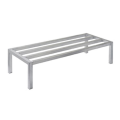 Focus Foodservice - Dunnage Rack, 2,000 lb. weight capacity, 48" x 20" x 12", standard duty, extruded type 6063-T5 aluminum tube, 1-1/2" x 1-1/2" x 1/16", 4 support bars, welded construction, tube spacing on 4-1/2" centers, capped feet, NSF