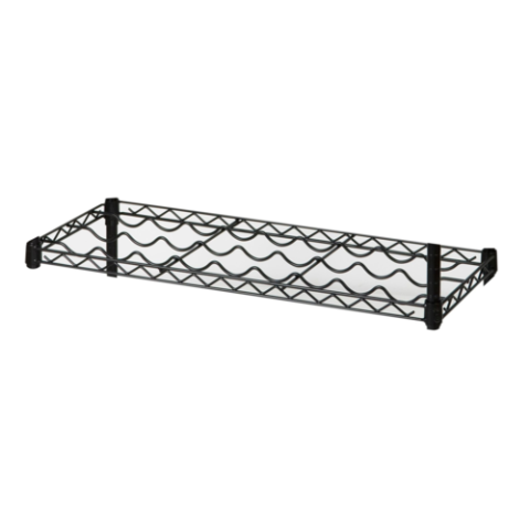 Focus Foodservice - Single Cradle Wire Wine Shelf, 36"W x 14"D, holds (9) 750 ml bottles, for dry storage, black epoxy coated, NSF