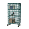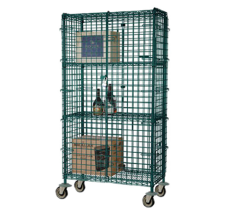Focus Foodservice - Security Cage Complete Mobile Kit, 24" x 36" x 68"H, for wet or dry storage, includes: (1) top shelf, (1) bottom shelf, (2) front panels, (2) side panels, (2) back panels and assembly hardware, (4) 63" posts, (4) casters (2 swivel & 2 swivel with brakes) with bumpers, green epoxy coated finish, NSF
