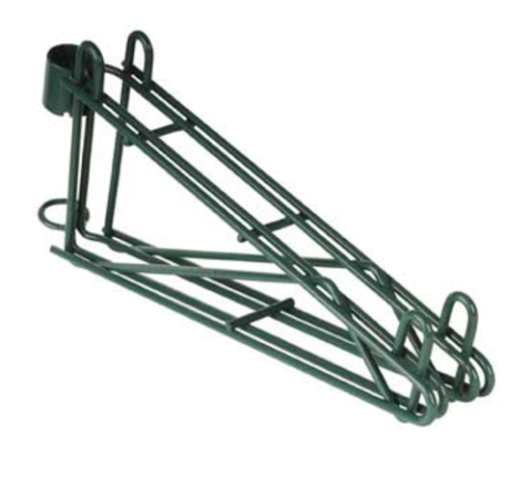 Focus Foodservice - Post Mount Wall Brackets, for wire shelving, double, for 18" deep shelf, includes: chromate shelf caps & plastic split sleeves, for wet or dry storage, green epoxy finish, NSF