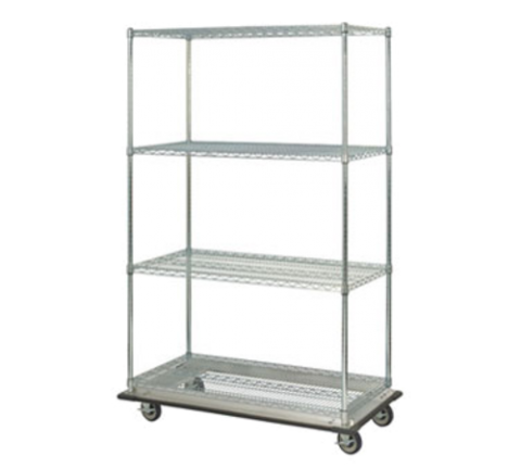 Focus Foodservice - Wire Shelf Truck, 24" x 60" x 63"H, includes: (4) shelves, (4) 63"H staked posts, aluminum split sleeves, & aluminum dolly truck, chromate finish, NSF