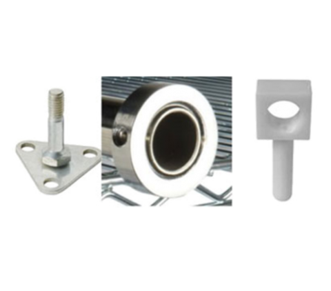 Focus Foodservice - High Density Stationary Kit, includes: (set of 4) locking collars (with Allen wrench and screws), polyethylene guide blocks, and zinc triangular security feet