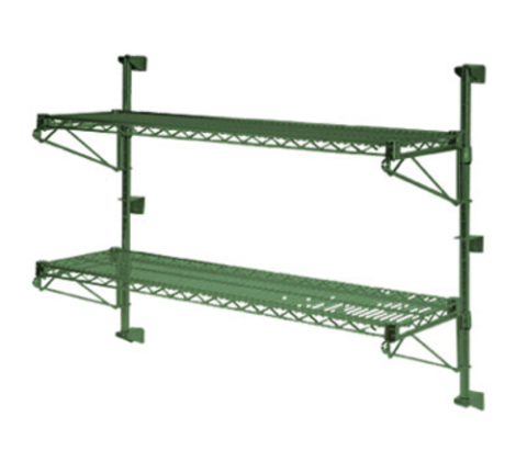 Focus Foodservice - Post-Type Wall Mount, 24"H, for (2) tiers, includes: (1) 24"H post with top & bottom mounting brackets, for wet or dry storage, green epoxy finish, NSF (shelves & shelf brackets not included)