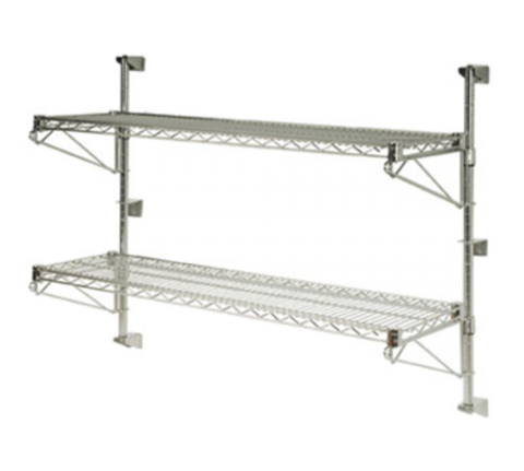 Focus Foodservice - Post-Type Wall Mount, 54"H, for (3) tiers, includes: (1) 54"H post with top & bottom mounting brackets & (2) intermediate brackets, for dry storage, chromate finish (shelves & shelf brackets not included)