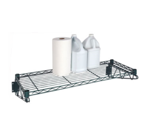 Focus Foodservice - Direct Wall Mount Kit, includes: (2) 18" (35.5 cm) single wall brackets, (1) 18" x 36" (35.5 cm x 91.4 cm) shelf, (4) chromate shelf caps, for wet or dry storage, green epoxy finish, NSF (mounting hardware not included)