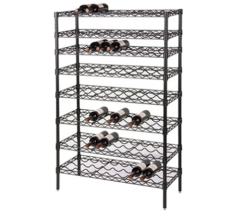 Focus Foodservice - Cradle Wire Wine Shelving Kit, (10) 36"W x 14"D shelves, (4) 63" stationary posts, holds (90) 750 ml bottles, for dry storage, black epoxy coated, NSF