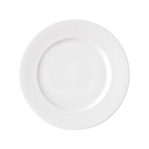 Oneida® - Plate, 9" dia., round, wide embossed rim, 100% lead and cadmium-free, chip resistant, dishwasher and microwave safe, porcelain, glazed finish, warm white, Luzerne, Current (must be purchased in case quantities) (limited lifetime warranty contact factory for details) (Special order item, contact factory for more details)