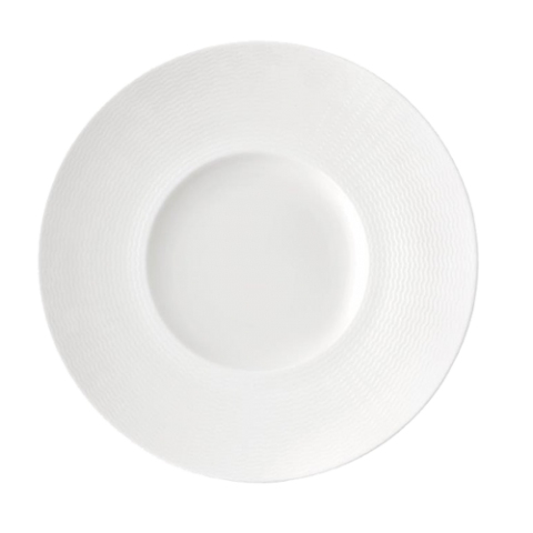 Oneida® - Plate, 9-1/4" dia., round, deep embossed rim, 100% lead and cadmium-free, chip resistant, dishwasher and microwave safe, porcelain, glazed finish, warm white, Luzerne, Current (must be purchased in case quantities) (limited lifetime warranty contact factory for details) (Special order item, contact factory for more details)