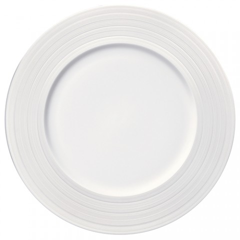 Oneida® - Plate, 10-5/8" dia., round, medium embossed matte rim, glossed well, 100% lead and cadmium-free, chip resistant, dishwasher and microwave safe, porcelain, warm white, glazed finish, Luzerne, Manhattan (must be purchased in case quantities) (limited lifetime warranty contact factory for details)