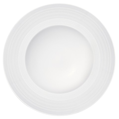 Oneida® - Rim Soup, 3-3/4 oz., 9-1/4" dia., round, wide embossed matte rim, glossed well, 100% lead and cadmium-free, chip resistant, dishwasher and microwave safe, porcelain, warm white, glazed finish, Luzerne, Manhattan (must be purchased in case quantities) (limited lifetime warranty contact factory for details)